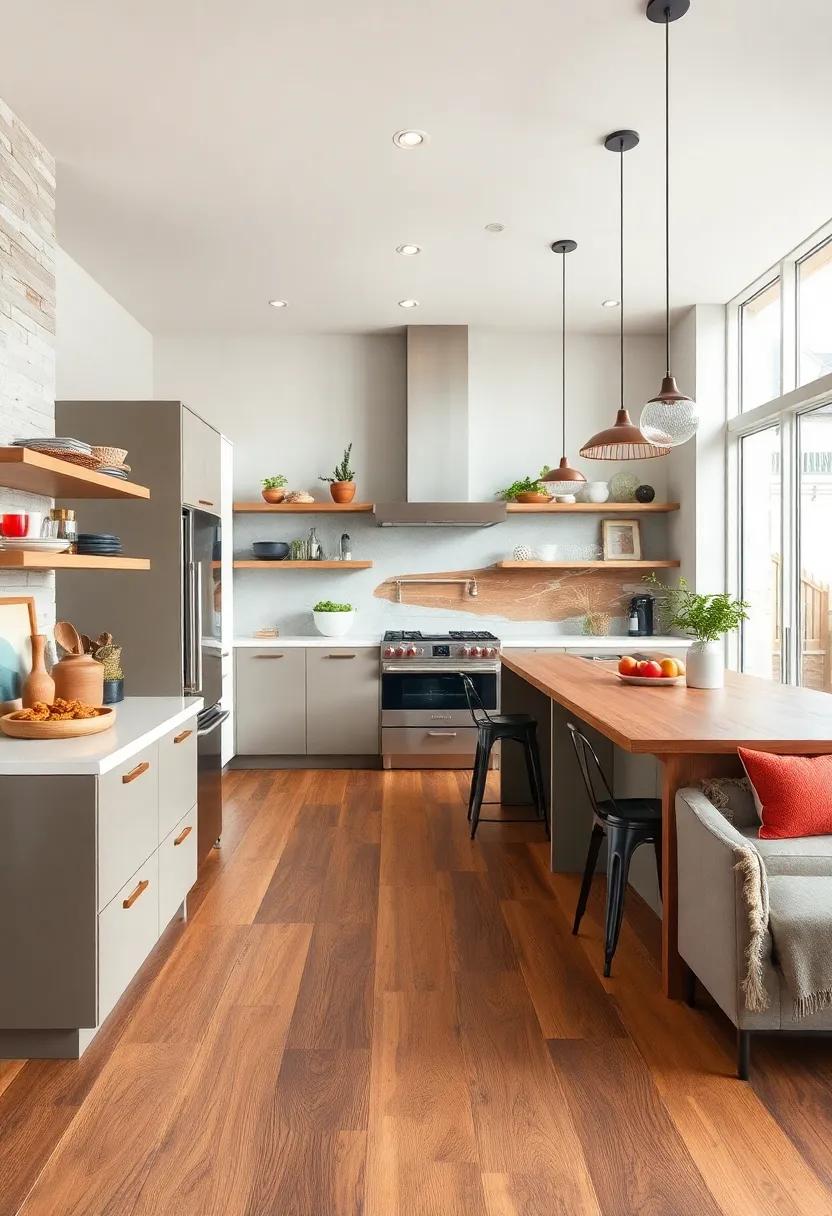 - Accents: Potted herbs, minimalist pendant lighting, handcrafted wooden stools