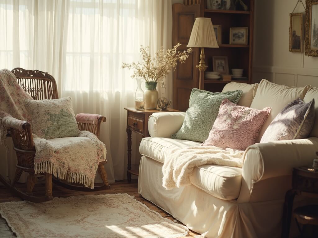 For a touch of elegance, consider adding a slipcovered sofa or a vintage-inspired rocking chair to your living room setup.