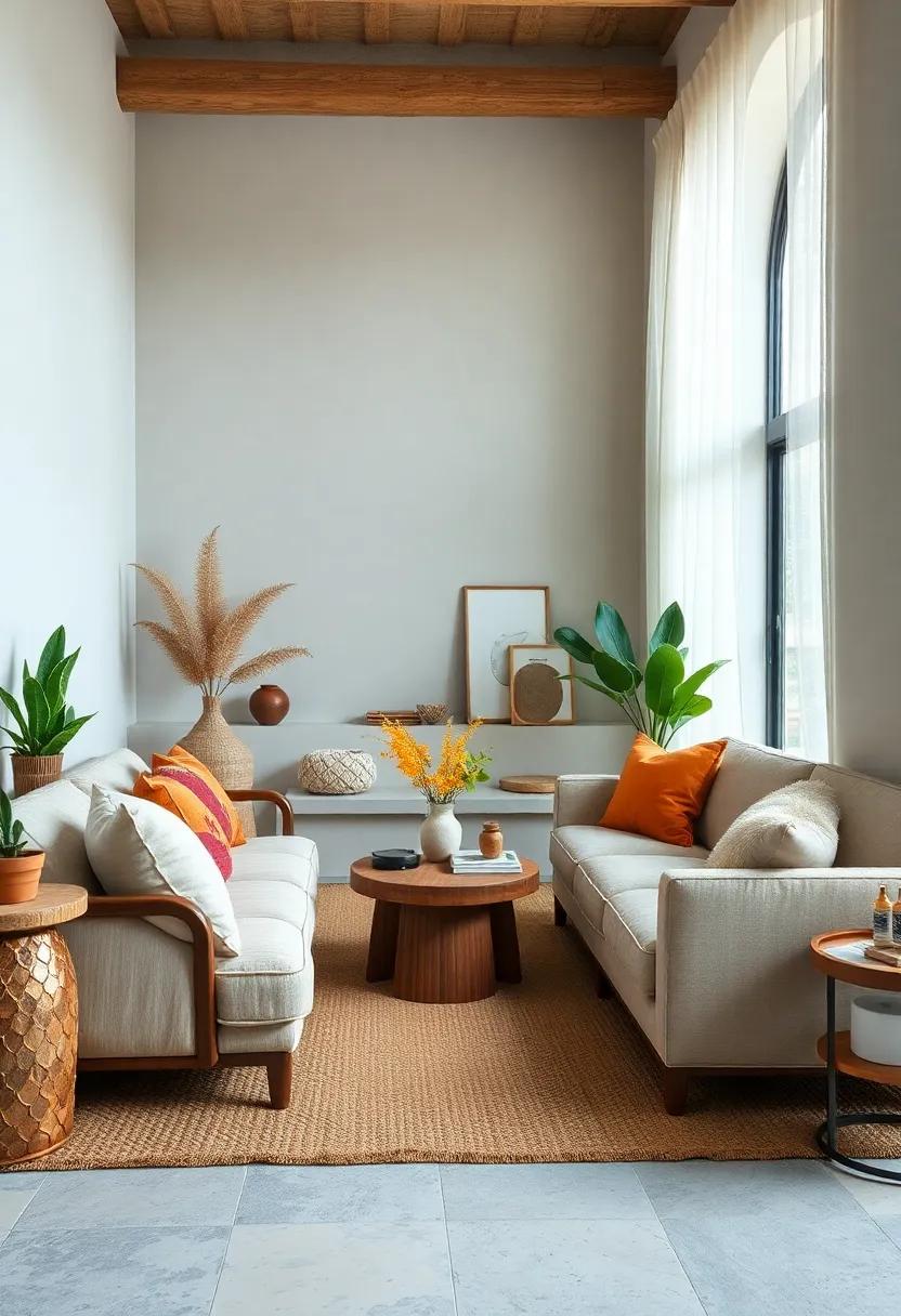 • Mingle different textures-combine smooth ceramics, rough jute rugs, and plush velvet pillows to echo the geometric-organic dialogue.