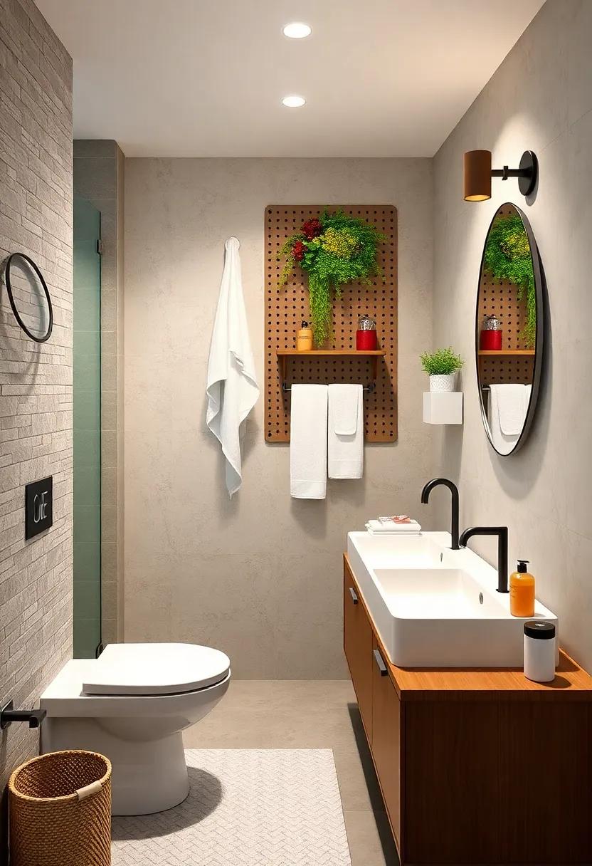 Transform an ordinary wall into a multitasking organizer by installing a pegboard in your bathroom. Pegboards offer an elegant modular system that can hold towels of varying sizes while also accommodating essentials like brushes, lotions, and even decorative items. Using colorful hooks and baskets, you can craft a personalized, visually appealing display that keeps everything accessible without sacrificing style. This method not only frees up precious drawer and counter space but also injects a burst of creativity into your bathroom’s aesthetic.