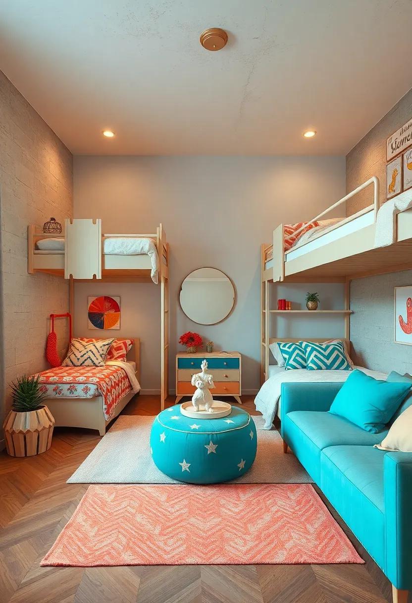 Incorporating these fabric choices thoughtfully creates distinct tactile identities within a shared room, encouraging both independence and togetherness.