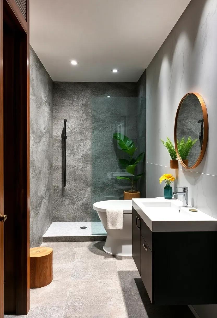 Elevate your shower area by integrating natural wood elements that radiate warmth and organic charm. Picture teak or cedar panels, flawlessly sealed to resist moisture, bringing a spa-like essence that calms the senses. Complement these wood accents with subtle, soft lighting-think dimmable LED strips tucked behind niches or under benches-to foster a relaxing glow that soothes after a long day. The combination of tactile wood grains and gentle illumination invites a moment of pause, turning your guest bathroom into a haven of tranquility.