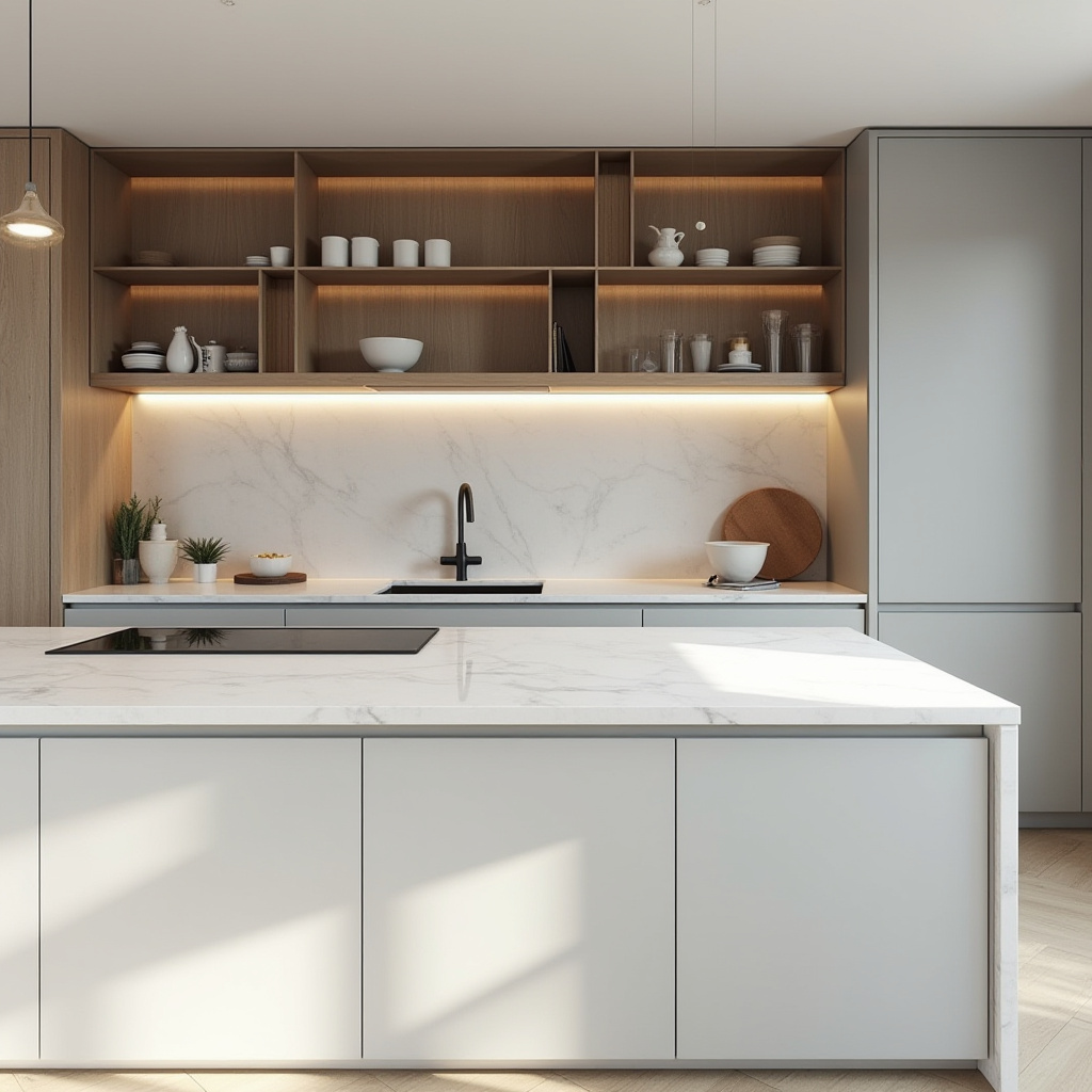 Expert Tip: Install under-cabinet lighting to highlight textures and provide task illumination without visual clutter.