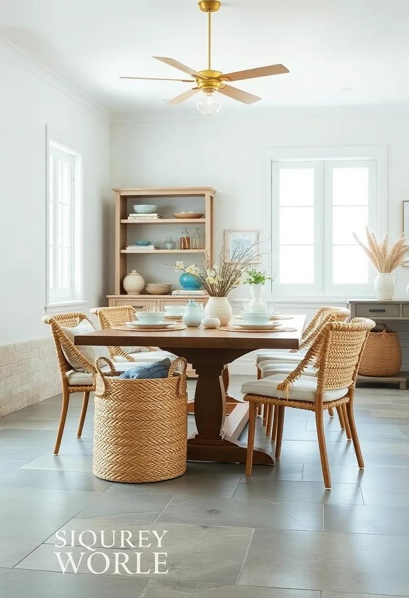 Woven Jute Rug Grounding the Dining Area with a Natural Fiber Evoking Beachside Pathways