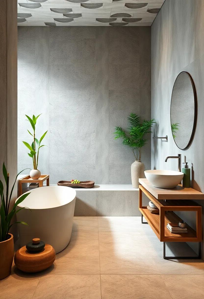 Harmonious Placement of Bamboo and Stone Accessories Within a Balanced Minimalist Bathroom Design