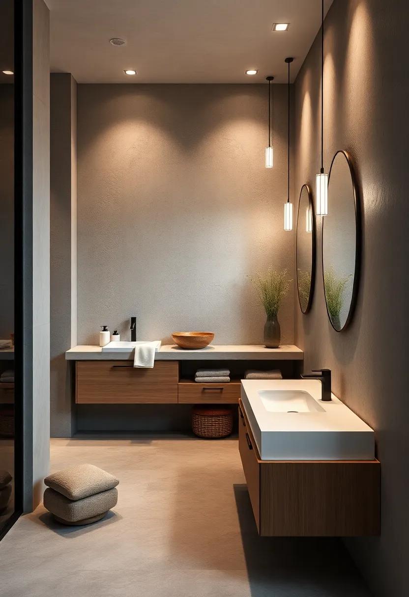 Tranquil Bathroom Vanities with Clean Lines and Organic Wood Textures Reflecting Zen Simplicity