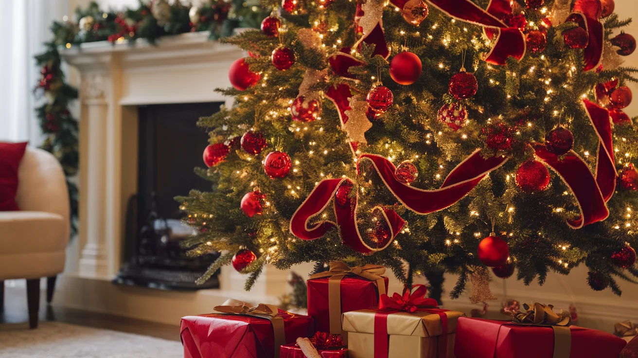 Red and gold is a timeless duo that exudes elegance and festivity. Adorn your tree with gold mesh ribbons, plush red velvet bows, and glittering gold ornaments. Incorporate gold stars, red berry clusters, and metallic leaves to create a rich, opulent look. This style is perfect for formal living areas or anyone seeking a sophisticated holiday atmosphere.