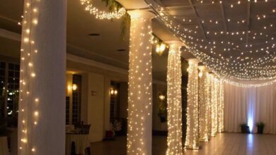 Make the most of your home’s architectural strengths by drawing attention to features like floor-to-ceiling windows with soft paper lantern lighting. Contrast angular window lines with rounded furniture to soften the space while letting the structure shine.