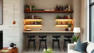Maximizing Style: Designing a Small Living Room Bar with Open Shelving
