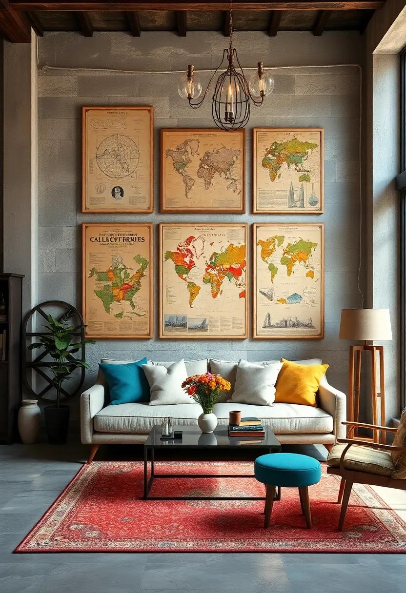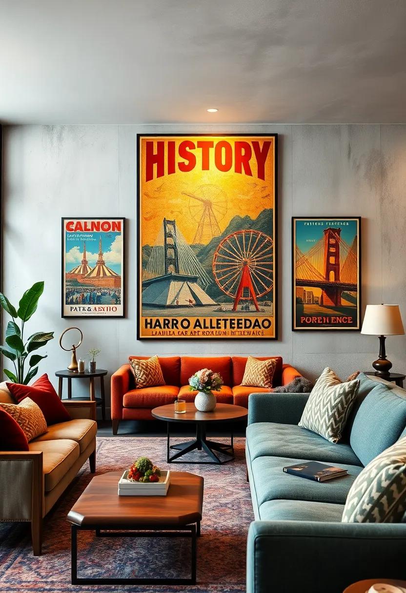 - Consistent framing in weathered wood or matte black to unify diverse posters.