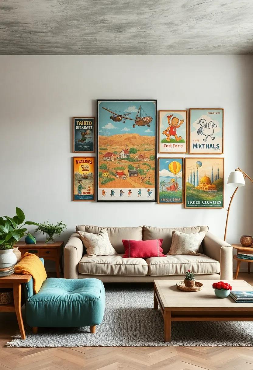 - Gallery Cluster: Arrange a collection of small to medium posters in an asymmetrical layout.