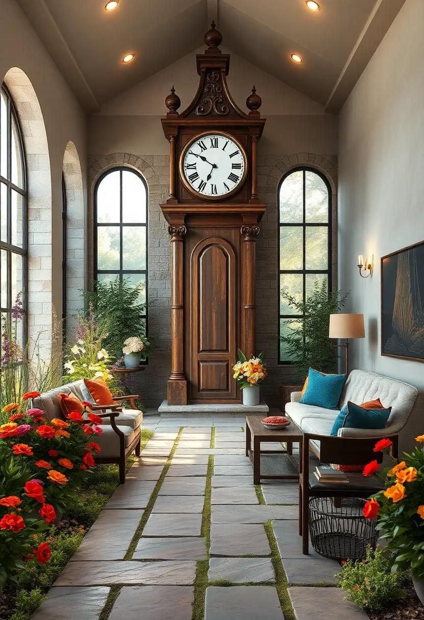 Bathed in the gentle glow of early morning light, the antique clock tower rises majestically, its weathered face telling stories of decades past. Surrounded by an intricately designed garden awash with blooming vintage flora, the scene evokes a serene stillness, inviting visitors to pause and reflect on the passage of time. The clock’s ornate hands, frozen yet resolute, contrast softly with the vibrant greens and earthy tones of the lush plants, creating a harmonious dance between nature and history. Every stone and leaf seems painted with whispers of bygone eras, offering a rare glimpse into a world where craftsmanship and natural beauty intertwine effortlessly.
