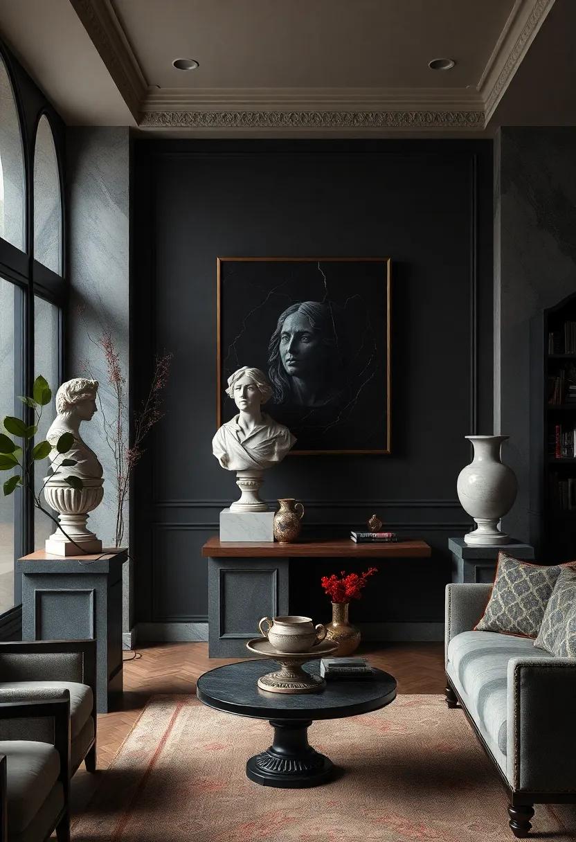 Enhance the atmosphere further by pairing these classic sculptures with select accents that underscore the dark academia vibe: