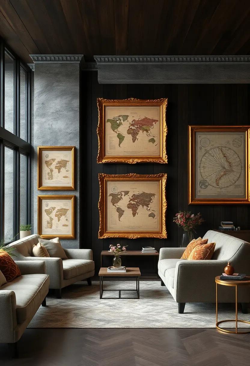 Positioning antique globes atop richly grained darkwood tables conjures an aura of discovery, calling to mind the secrets whispered from far-flung shores. These artifacts, with their muted, sepia-toned surfaces, invite viewers to trace the faded coastlines and imagined continents that once sparked the curiosity of curious minds and intrepid navigators alike. Nearby, baroque maps unfurl in meticulous detail, their ornate cartouches and flourishing illustrations acting as portals into an era where every journey was both a daring adventure and a work of art.