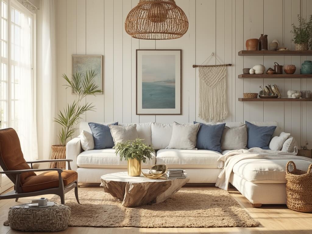 - Signature elements: Driftwood pieces, seashell collections, and handwoven baskets