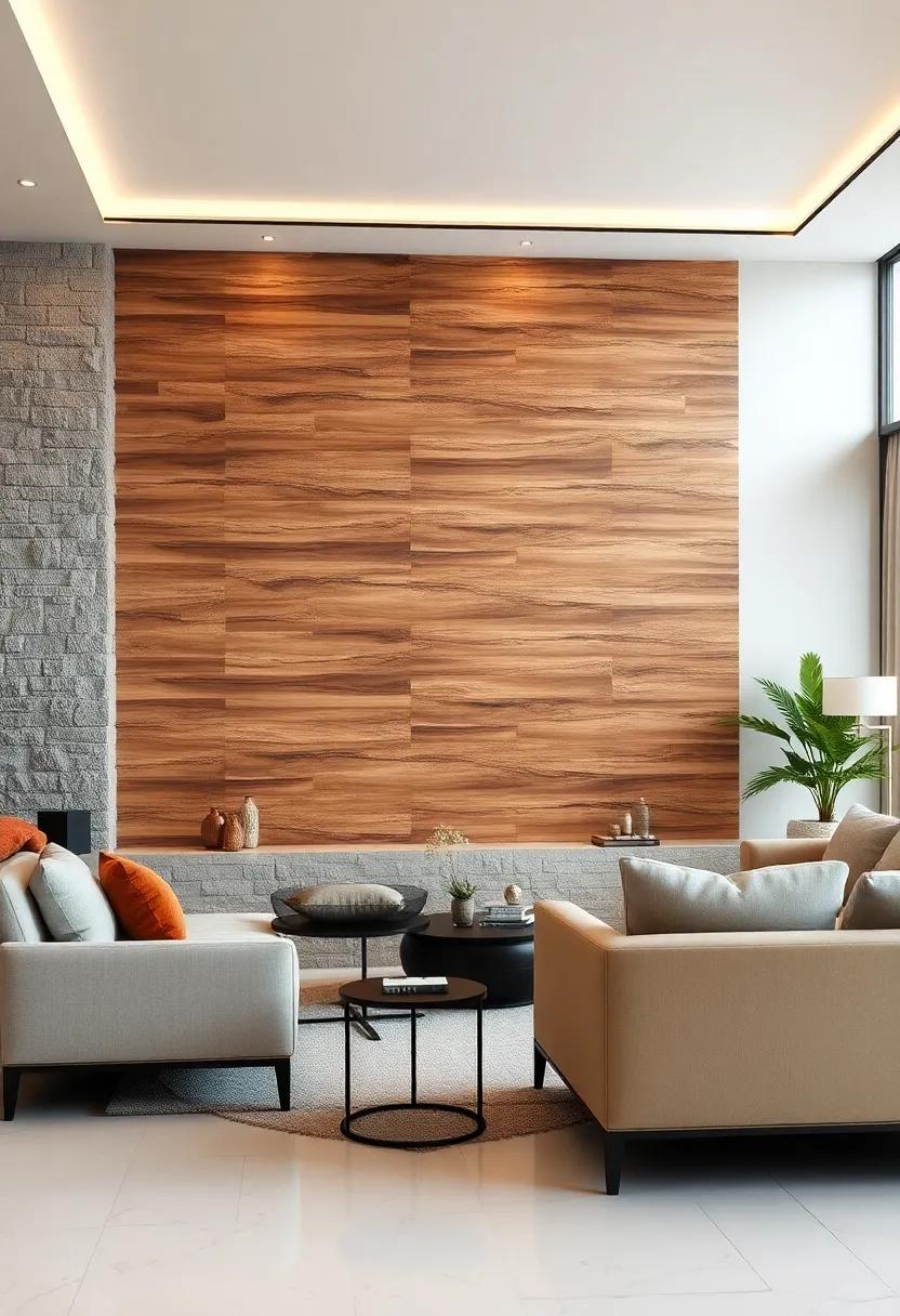 Enhancing your living space with natural elements has never been easier or more elegant. Using layered wood panels with varied grain patterns and textures adds an inviting depth that instantly elevates any room. This approach not only brings warmth through rich wood tones but also introduces visual intrigue by combining smooth finishes with rugged, rustic edges. The interplay of light and shadow on the subtly uneven surfaces creates a dynamic backdrop that complements both contemporary and classic décor.