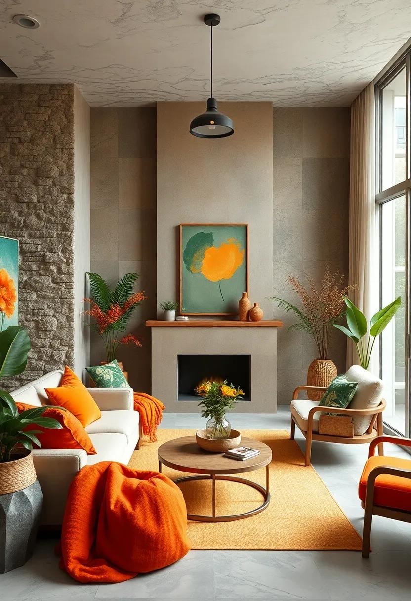 Bringing the raw energy of nature indoors requires more than just shades of green-it’s about creating a vibrant dialogue between natural greens and warm rustic oranges that captures the essence of the outdoors while infusing a living space with warmth and personality. The lushness of deep foliage-inspired greens, when paired with the earthy, sun-kissed hues of burnt oranges and terracotta, forms a refreshing sanctuary that feels both organic and inviting. This color pairing reflects the changing seasons, evoking images of autumn leaves and forest undergrowth that subtly energize any room without overwhelming the senses.