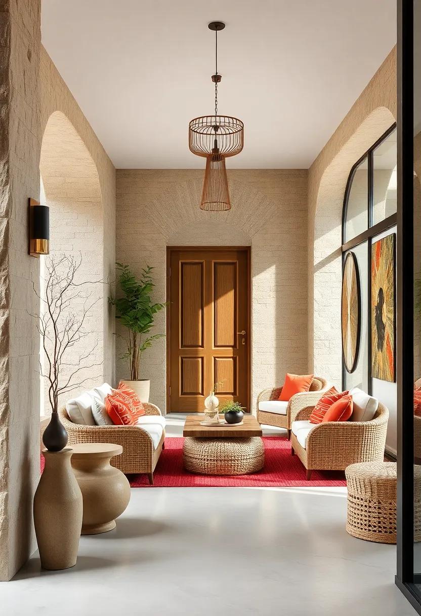 Artisanal Entry Designs Focusing on Handcrafted Rattan Elements and Neutral Color Schemes